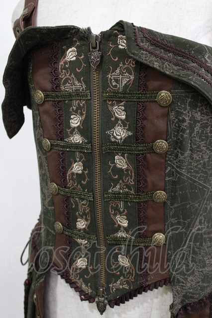 OZZ ANGELO / 薔薇十字刺繍ビスチェオーバーワンピース カーキ H-26-02-10-035-OO-OP-KB-ZH
