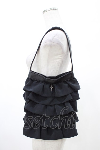 BPN / フリルハンドバッグ ブラック H-26-02-08-1024-GO-BG-KB-ZH
