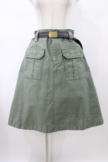 Jane Marple Dans Le Salon / ミリタリーサテンワークスカート モスグリーン H-26-02-08-1036-JM-SK-KB-ZH