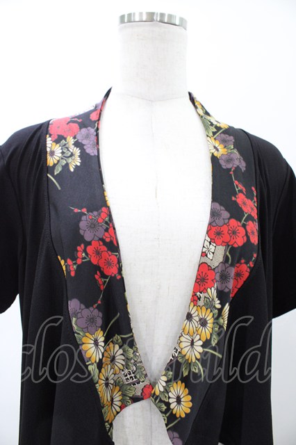 Qutie Frash / バックプリント半袖カーデ ブラック H-26-02-08-1051-QU-TO-KB-ZH [2100030000086094-H-26-02-08-1051-QU-TO-KB-ZH]
