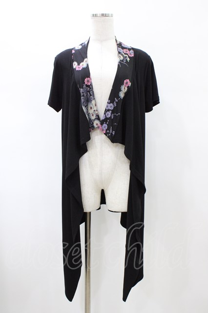 Qutie Frash / バックプリント半袖カーデ ブラック H-26-02-08-1052-QU-TO-KB-ZH [2100030000086095-H-26-02-08-1052-QU-TO-KB-ZH]
