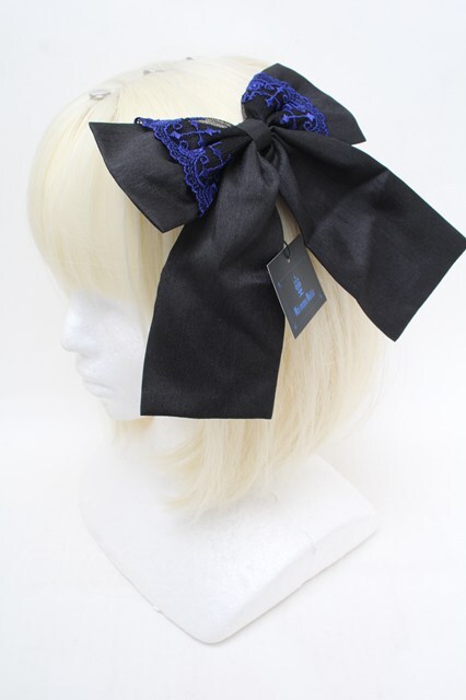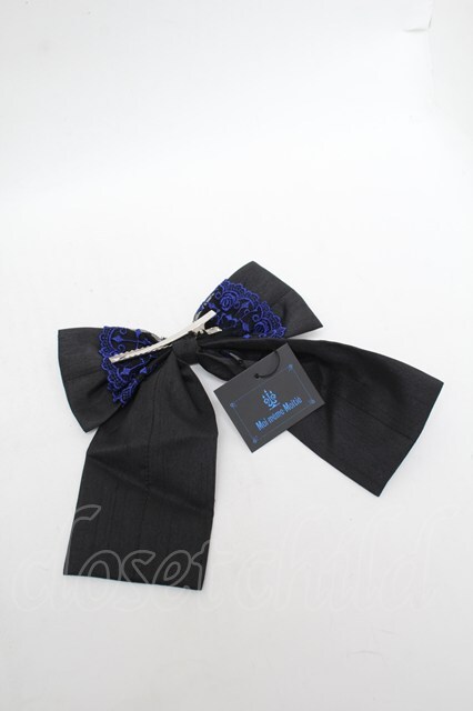 Moi-meme-Moitie / Rose fanceレースリボンクリップ 黒x青 S-26-02-05-009-MO-AC-AS-ZS