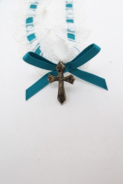 Moi-meme-Moitie / クロスロゴチャームレースチョーカー エメラルドxゴールド S-26-02-05-018-MO-AC-AS-ZS