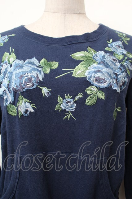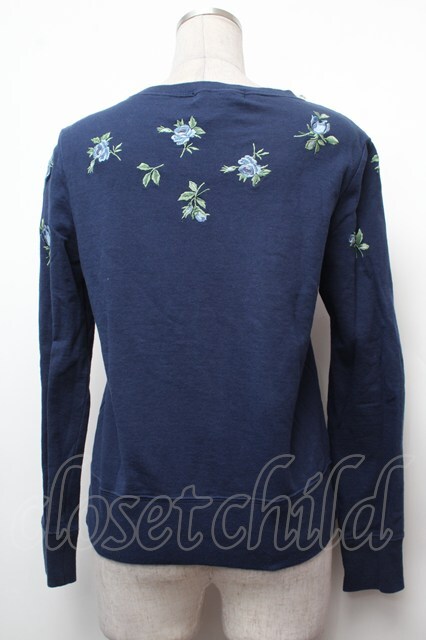 Jane Marple / ローズ刺繍スウェット 紺 S-26-02-05-028-JM-TO-AS-ZS