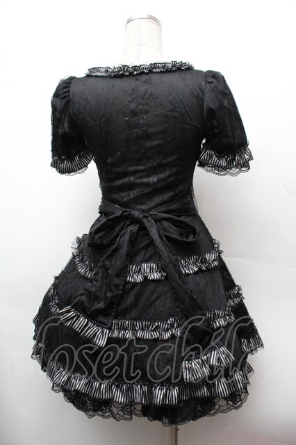 Drug Honey / レースフリルストライプワンピース 黒x白 S-26-02-05-035-PU-OP-AS-ZS [2100020000037223-S-26-02-05-035-PU-OP-AS-ZS]