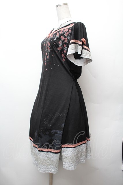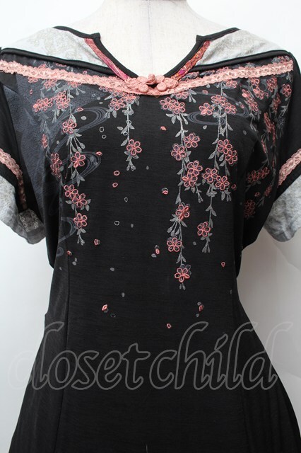Ozz oneste / 桜刺繍チャイナワンピース 黒 S-26-02-05-039-OO-OP-AS-ZS