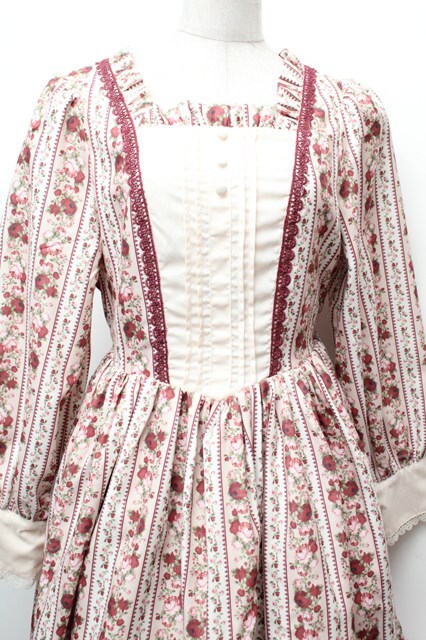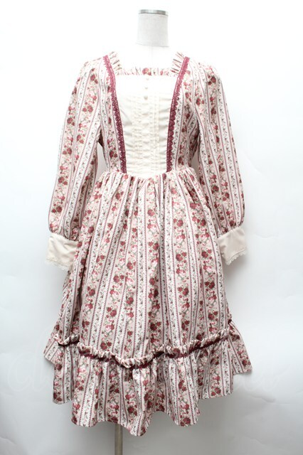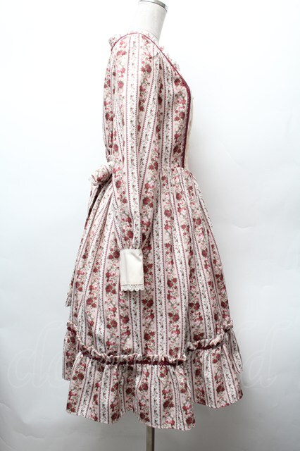 axes femme kawaii / ストライプローズ柄ワンピース ベージュxワイン S-26-02-05-045-AX-OP-AS-ZS