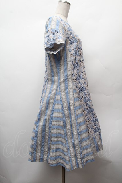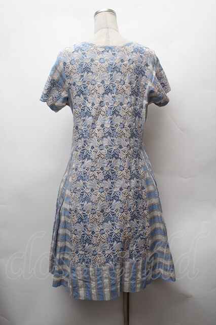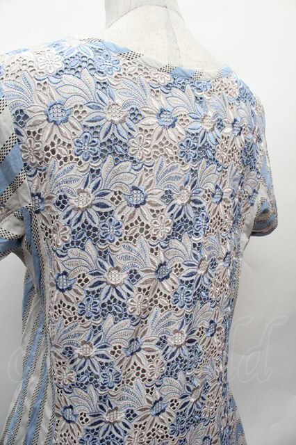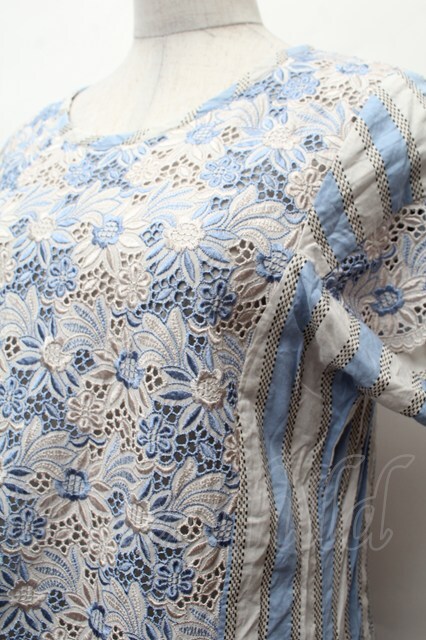 Jane Marple Dans Le Salon / 刺繍ストライプワンピース サックスxグレー S-26-02-05-049-JM-OP-AS-ZS