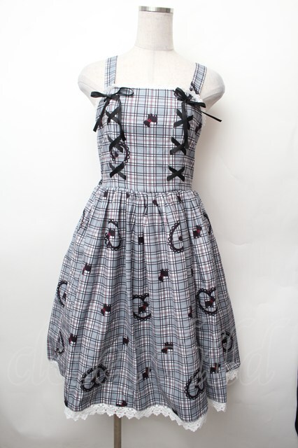 axes femme kawaii / おさんぽテリア柄ジャンスカ M グレー S-26-02-05-058-AX-OP-AS-ZS