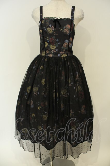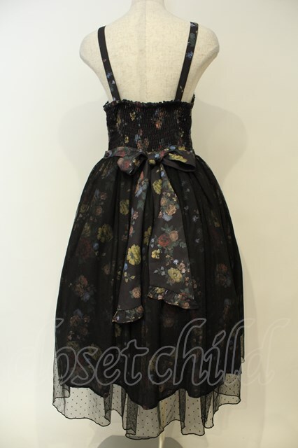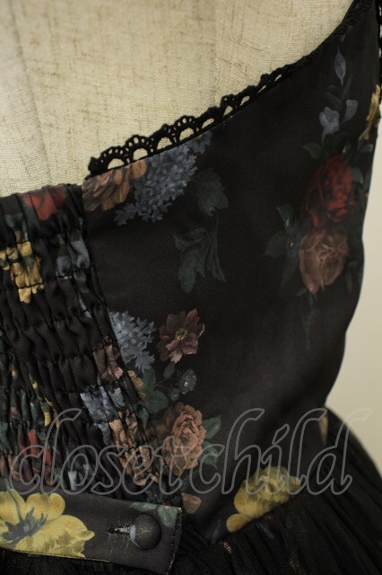 axes femme kawaii / クラシックブーケ柄ジャンスカ クロ O-26-02-06-047-AX-OP-IG-OS