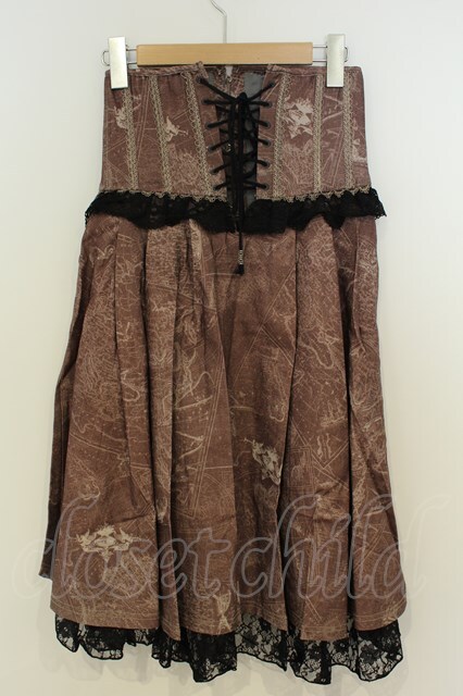 Ozz oneste / 地図柄フィッシュテールスカート ブラウン O-26-02-06-007-OO-SK-OW-OS