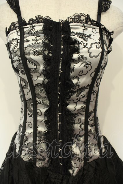 Qutie Frash / ドラゴンサテンコルセットキャミワンピース ブラック×シルバー O-26-02-06-039-QU-OP-OW-OS