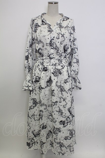 axes femme NOSTALGIE / 星座柄スキッパーワンピース M ホワイト T-26-02-08-002-AX-OP-SA-ZT [2100060000041562-T-26-02-08-002-AX-OP-SA-ZT]