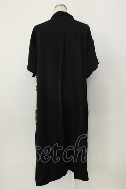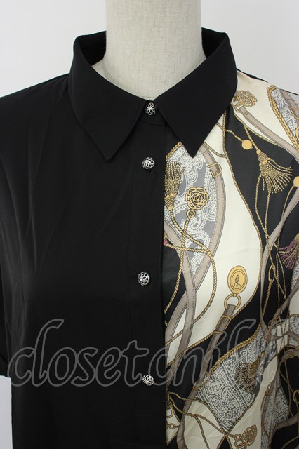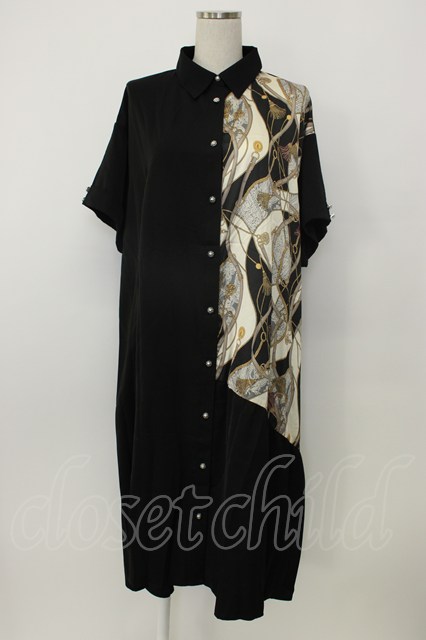 axes femme / 柄切替シャツワンピース 黒 T-26-02-08-003-AX-OP-SA-ZT