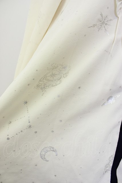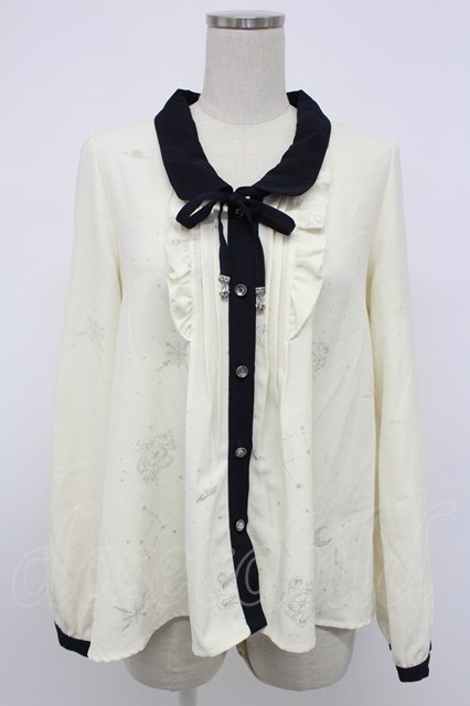 axes femme / 星座柄箔プリントブラウス M ホワイト×ネイビー T-26-02-08-005-AX-BL-SA-ZT