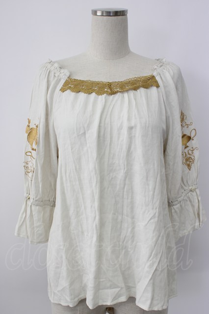 axes femme / アラジン/刺繍トップス M ホワイト T-26-02-08-008-AX-TO-SA-ZT [2100060000041586-T-26-02-08-008-AX-TO-SA-ZT]
