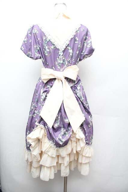 中国ロリータ / フラワーフレームプリントワンピース XL パープル S-26-02-06-039-LO-OP-TE-ZS