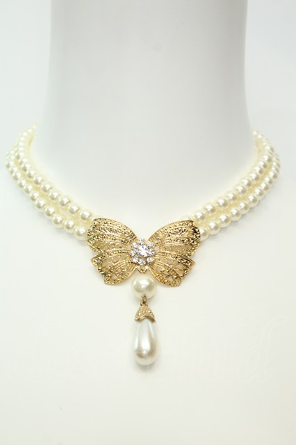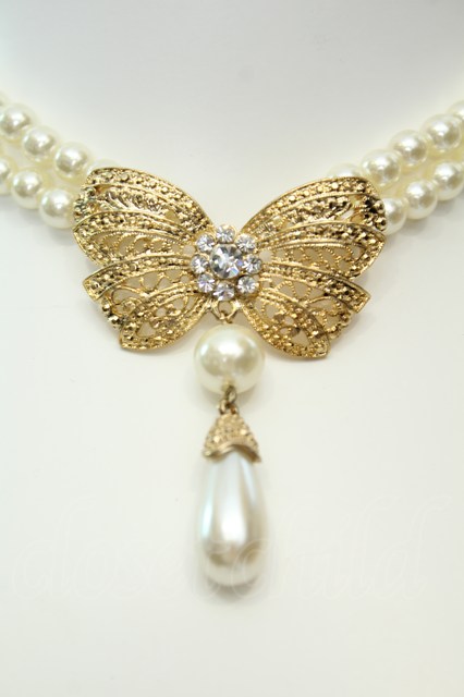 axes femme / リボンモチーフパールチョーカー シロ×ゴールド O-26-02-06-1039-AX-AC-OW-OS