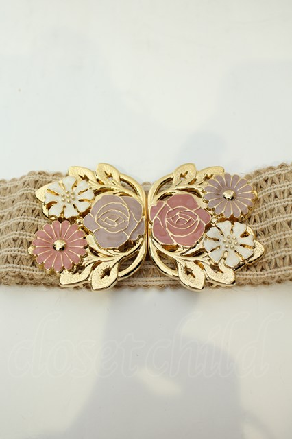 axes femme / 蝶&フラワーモチーフゴムベルト キナリ O-26-02-06-1092-AX-ZA-OW-OS