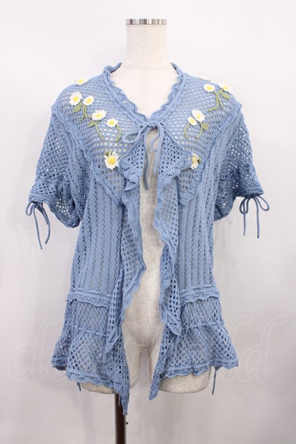 PINK HOUSE / モチーフ付き透かし編みカーディガン Free ブルーグレー H-26-02-09-1022-LO-TO-NS-ZH
