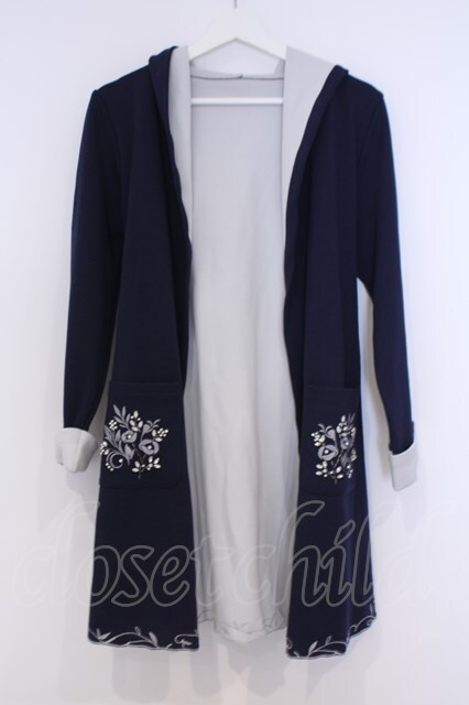 axes femme / フード付き刺繍コーディガン ネイビー O-26-02-07-021-AX-JA-IG-OS