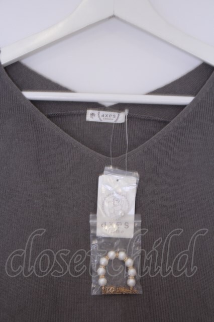 axes femme / Vネックロングニットワンピ M グレー O-26-02-07-031-AX-OP-IG-OS [2100080000070086-O-26-02-07-031-AX-OP-IG-OS]