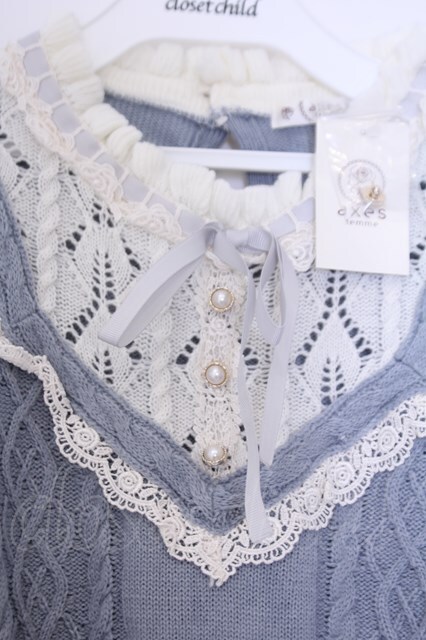 axes femme / ブロッキングニットプルオーバー M サックス O-26-02-07-028-AX-TO-IG-OS