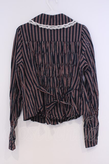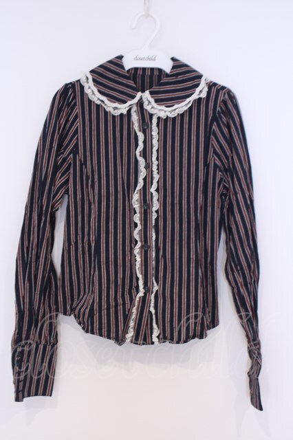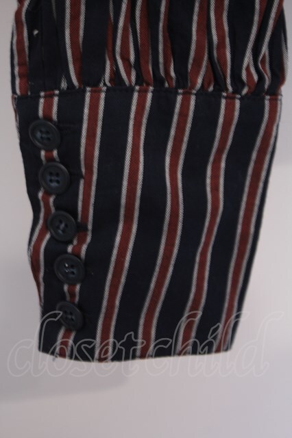 metamorphose / ロゴリボン付丸襟ブラウス 紺エンジレジメン O-26-02-07-004-ME-TO-OW-OS [2100080000074175-O-26-02-07-004-ME-TO-OW-OS]