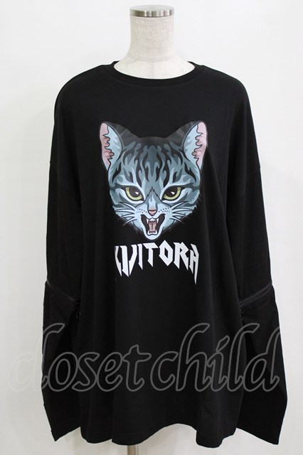 LISTEN FLAVOR / 猫サンチーム2WAYジップロンT ユニセックス 黒 H-26-02-11-062-PU-TO-AK-ZH [2100030000086247-H-26-02-11-062-PU-TO-AK-ZH]