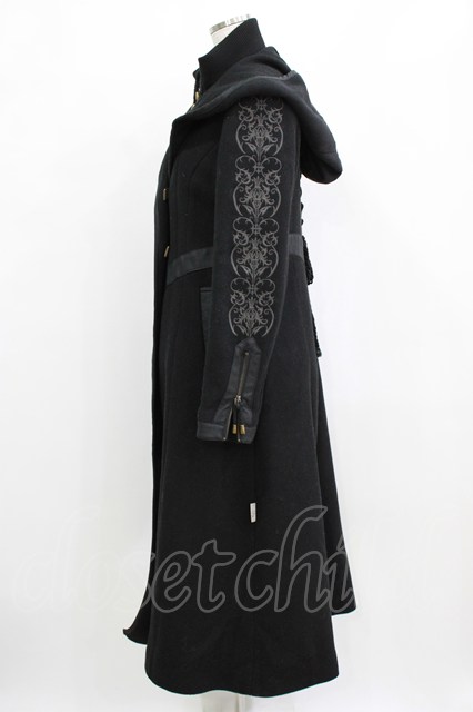 Rozen Kavalier / 刺繍袖ロングコート ブラック H-26-02-11-024-OO-CO-KB-ZH