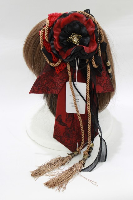 Ozz On / コサージュリボンクリップ 黒×赤 H-26-02-11-070-OO-AC-KB-ZH