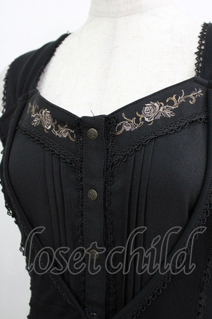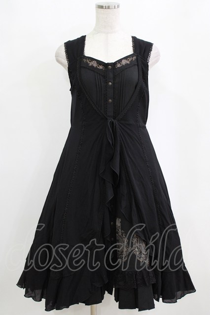 Ozz oneste / 薔薇刺繍レイヤードワンピース 黒 H-26-02-11-013-OO-OP-AK-ZH