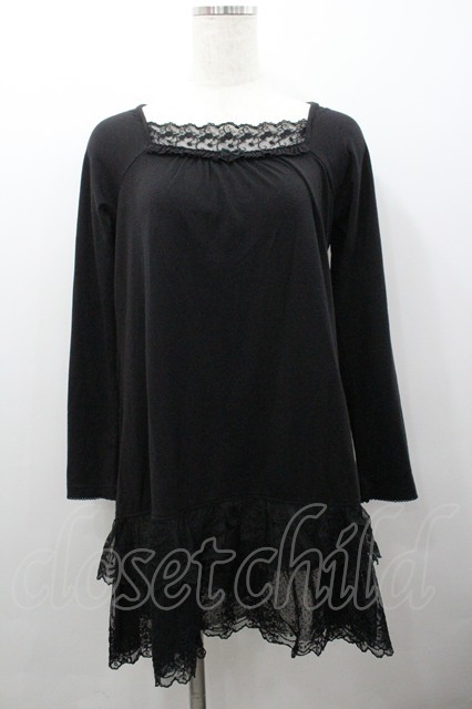 PINK HOUSE / 裾2段レース長袖トップス ブラック I-26-02-06-011-LO-TO-SA-ZI [2100060000048768-I-26-02-06-011-LO-TO-SA-ZI]