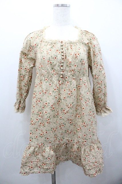 PINK HOUSE / 花柄スクウェアネック五分袖チュニック ベージュ I-26-02-06-017-LO-BL-SA-ZI [2100060000048762-I-26-02-06-017-LO-BL-SA-ZI]