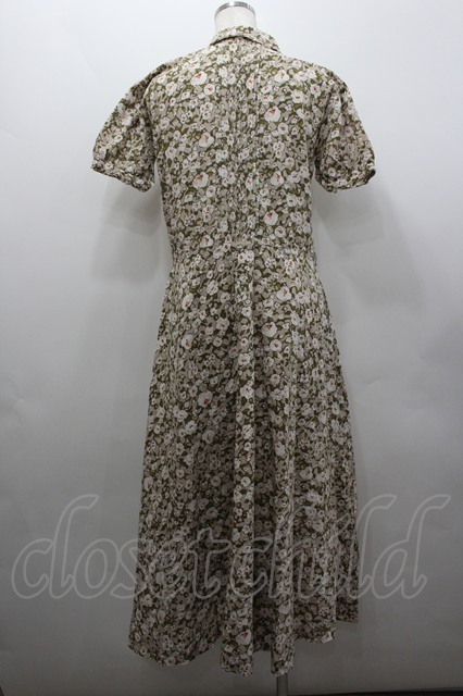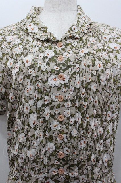 INGEBORG / 総花柄半袖前開きワンピース ベージュ I-26-02-06-073-LO-OP-SA-ZI