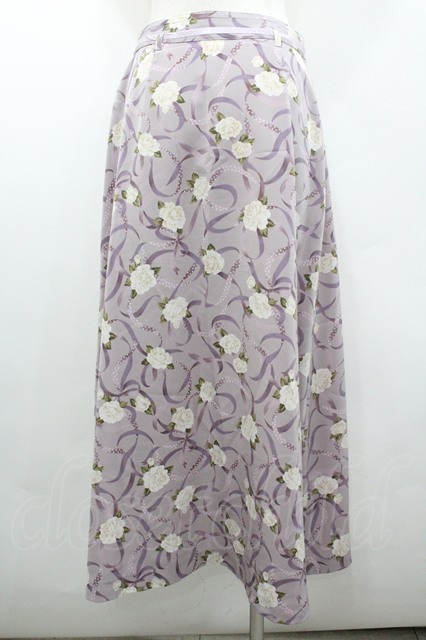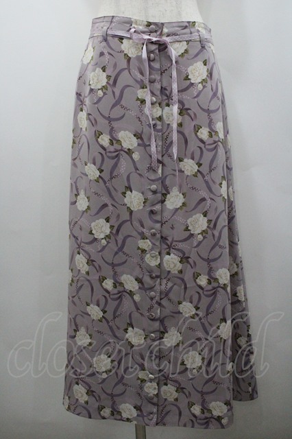 INGEBORG / 薔薇&ドットリボン柄前開きスカート L ラベンダー I-26-02-06-088-LO-SK-SA-ZI