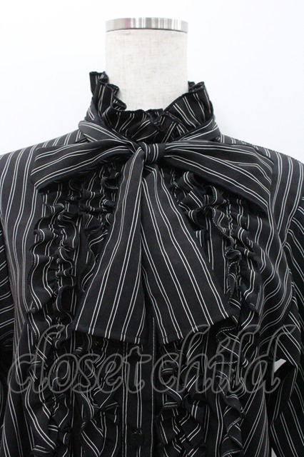 Physical Drop / ストライプリボンタイブラウス 黒xグレー I-26-02-06-004-LO-BL-SA-ZI [2100060000049325-I-26-02-06-004-LO-BL-SA-ZI]