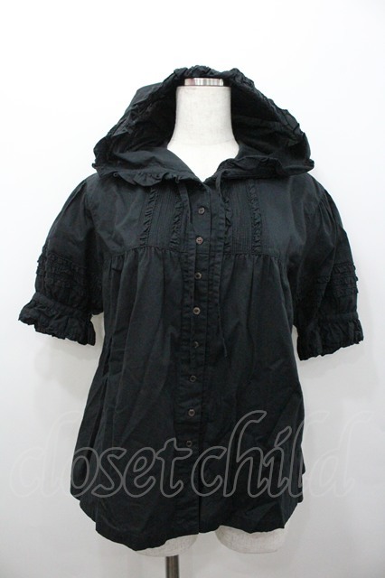 PINK HOUSE / フロントピンタックフリルフード長袖ブラウス 黒 I-26-02-06-009-LO-BL-SA-ZI [2100060000045663-I-26-02-06-009-LO-BL-SA-ZI]