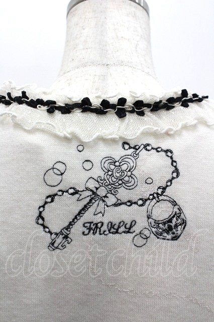 FRILL / はしごレースリボンカーディガン 白X黒 I-26-02-06-028-HN-TO-SA-ZI