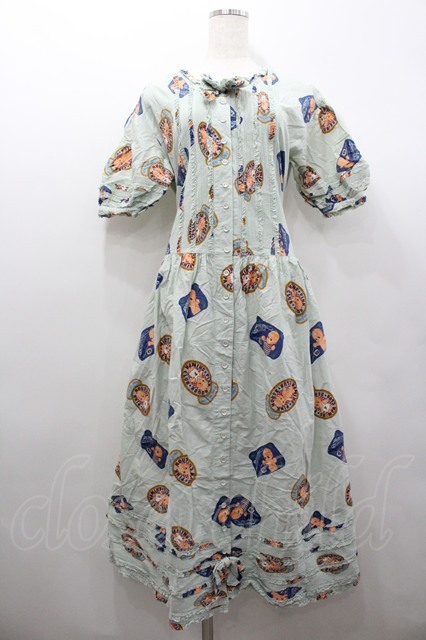 PINK HOUSE / キューピーワッペン柄半袖前開きワンピース ライトブルー I-26-02-06-077-LO-OP-SA-ZI