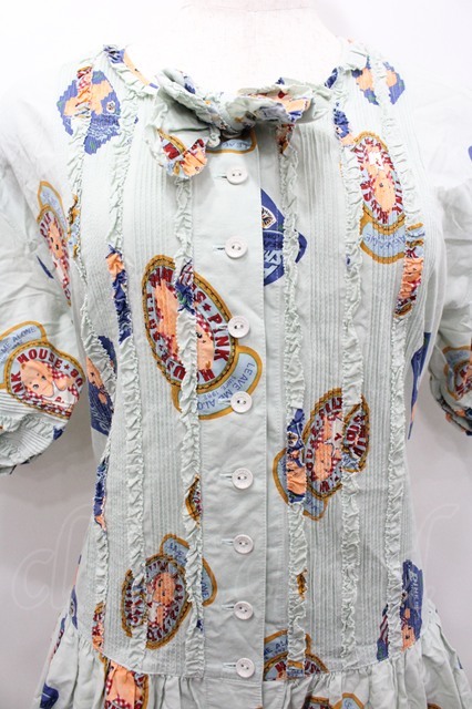 PINK HOUSE / キューピーワッペン柄半袖前開きワンピース ライトブルー I-26-02-06-077-LO-OP-SA-ZI [2100060000032990-I-26-02-06-077-LO-OP-SA-ZI]