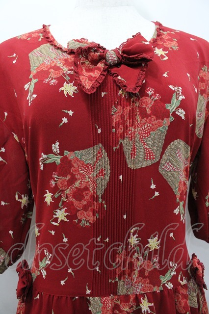 PINK HOUSE / カーネーションバスケット柄半袖ワンピース レッド I-26-02-06-082-LO-OP-SA-ZI [2100060000032991-I-26-02-06-082-LO-OP-SA-ZI]