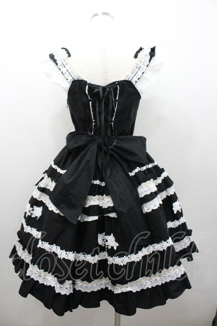 BABY,THE STARS SHINE BRIGHT / Rose Lace Rococoジャンパースカート 黒X白 I-26-02-06-044-BA-OP-SA-ZI