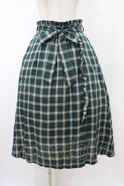 Secret Honey / リボン付きチェックスカート Free グリーン H-26-02-11-1046-CA-SK-NS-ZH