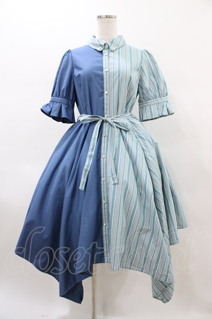 axes femme / バイカラー半袖ワンピ M ブルー H-26-02-11-1024-AX-OP-NS-ZH [2100030000049823-H-26-02-11-1024-AX-OP-NS-ZH]