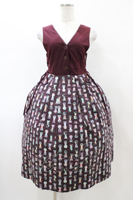 axes femme POETIQUE / アリス 鍵穴柄ジャンスカ M ワイン H-26-02-11-1035-AX-OP-NS-ZH