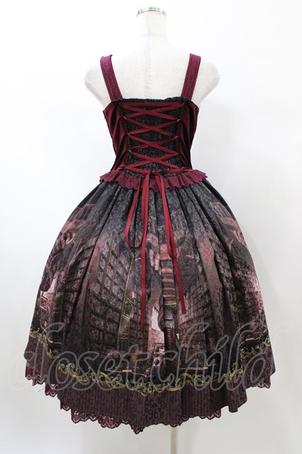 axes femme kawaii / リブラリーアビスチェ風ワンピース M ワイン H-26-02-11-1034-AX-BL-NS-ZH