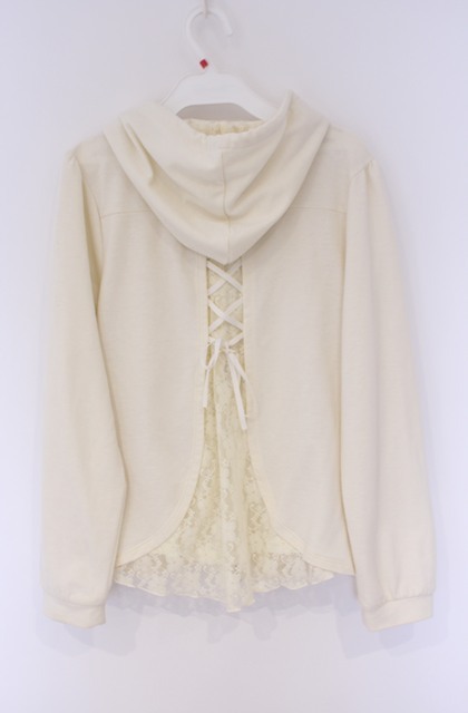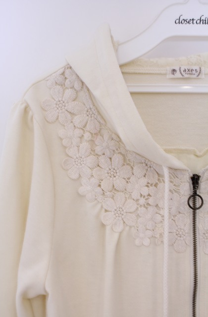 axes femme / バックシャンレースパーカー M アイボリー O-26-02-07-1017-AX-TO-YM-OS