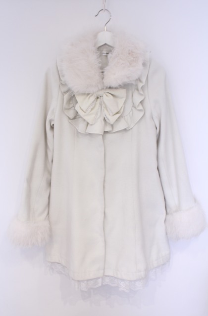 Lily Merry / ファー付きリボンコート M シロ O-26-02-07-1022-LO-CO-YM-OS [2100080000074203-O-26-02-07-1022-LO-CO-YM-OS]