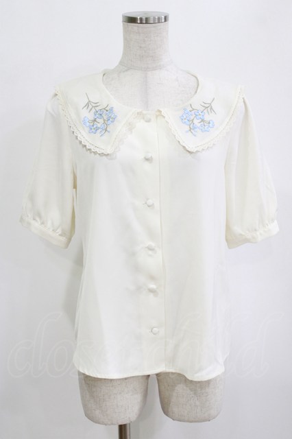 Fi.n.t / デルフィニウム刺繍ビッグカラーブラウス Free WHITE×BL H-26-02-12-051-CA-BL-NS-ZH